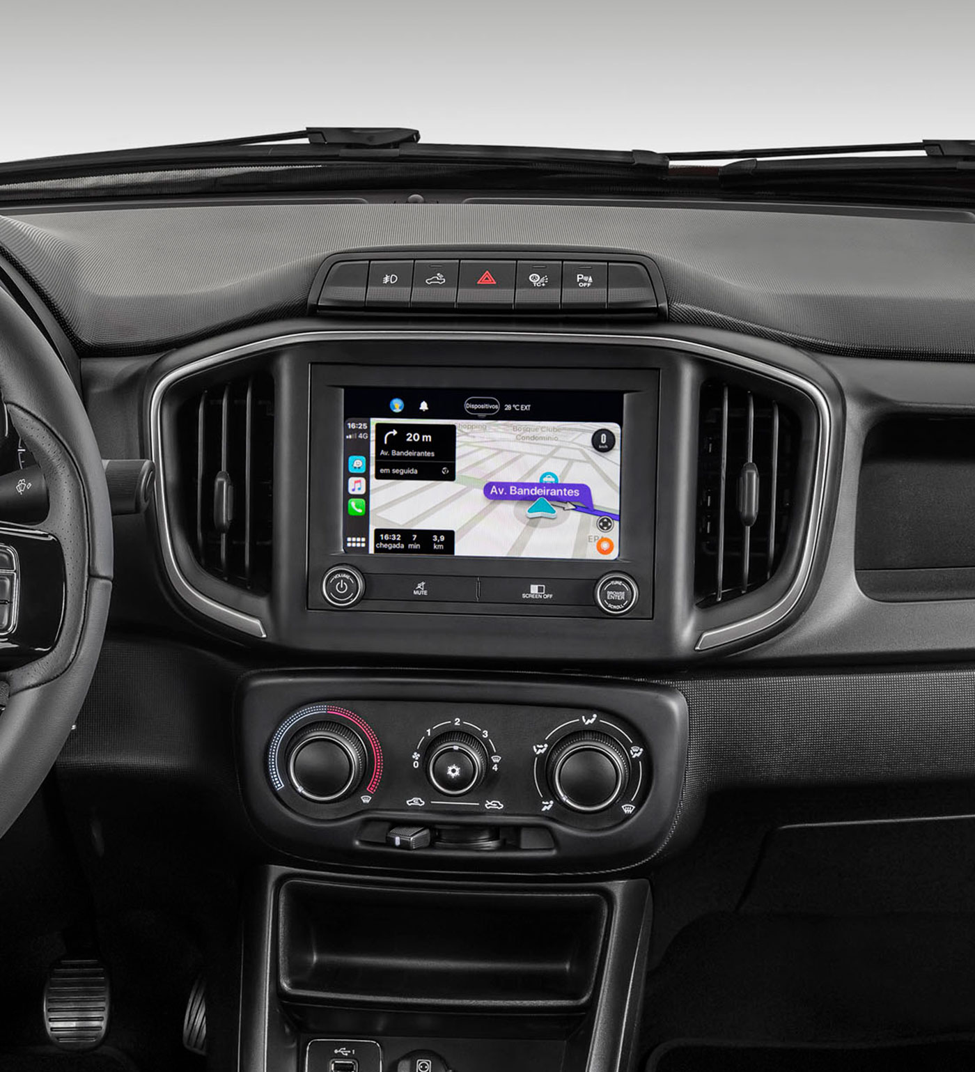 Con conectividad Android Auto y Apple Car Play, en versión RAM 700 Longhorn exclusivamente. Cuenta a la vez con un práctico conector USB.