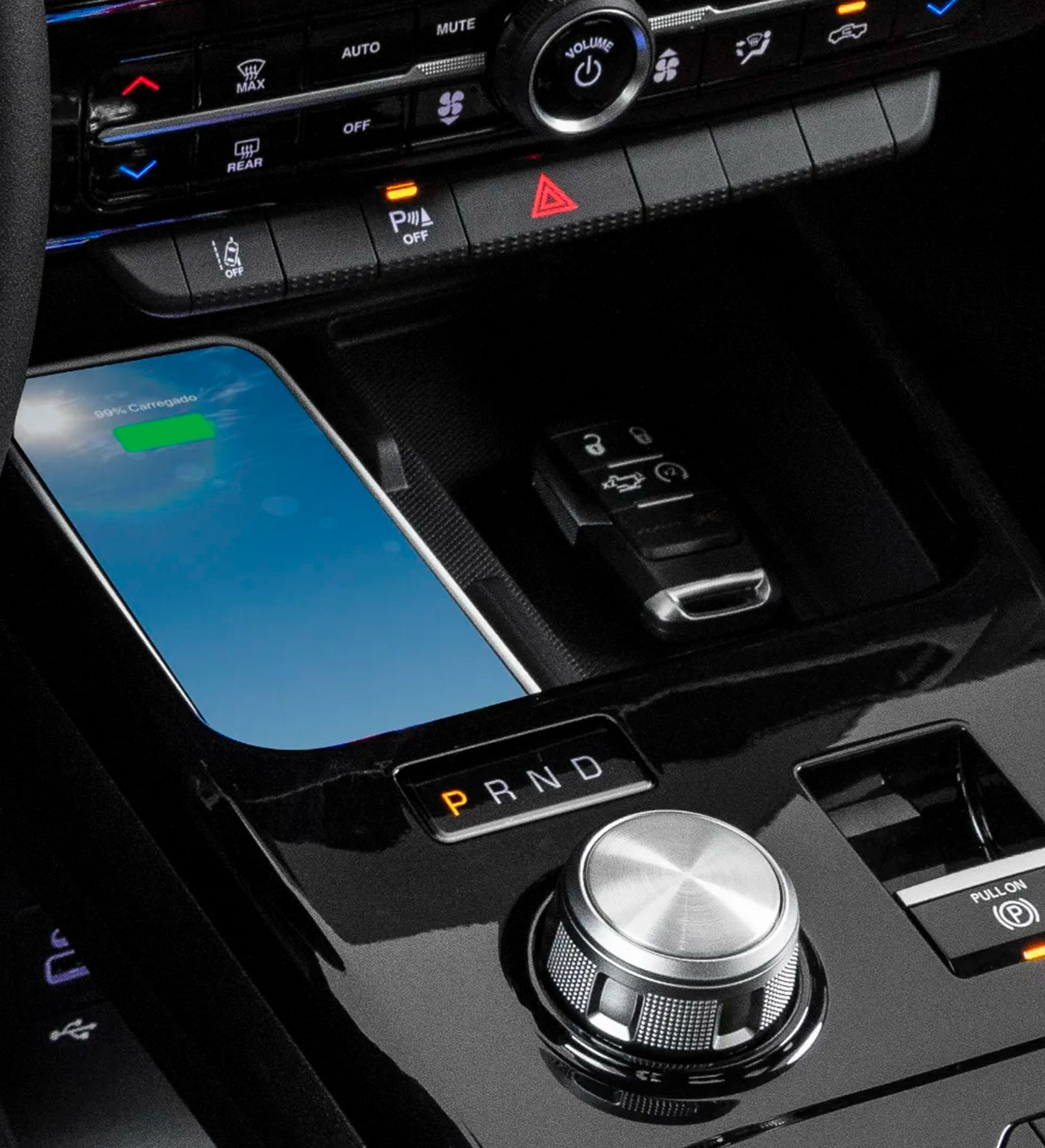 Ramcharger es nuestro sistema de carga por inducción de smartphones de la Rampage. Situado en la parte superior de la consola central, carga tu smartphone de forma práctica, sin necesidad de cables.