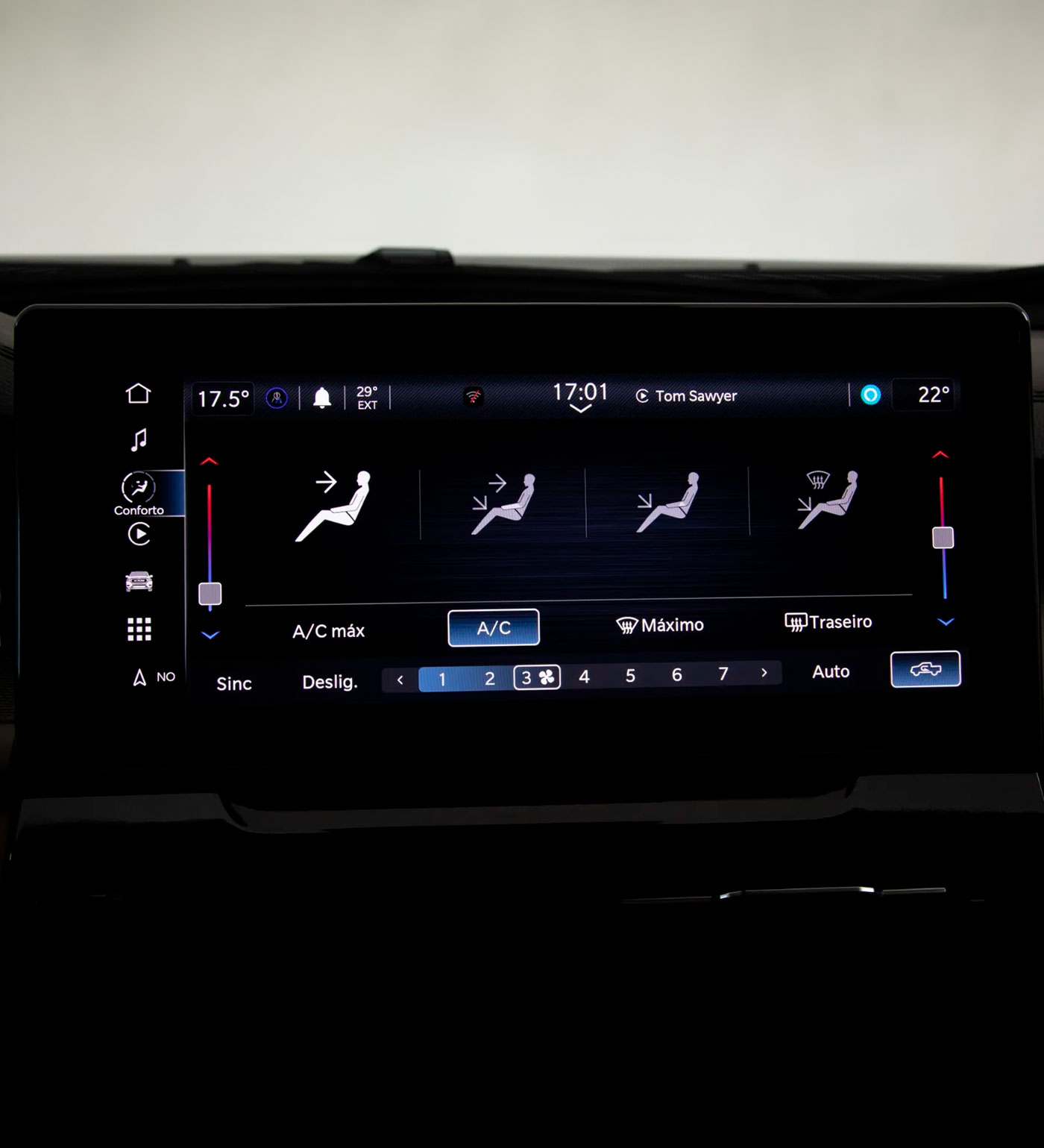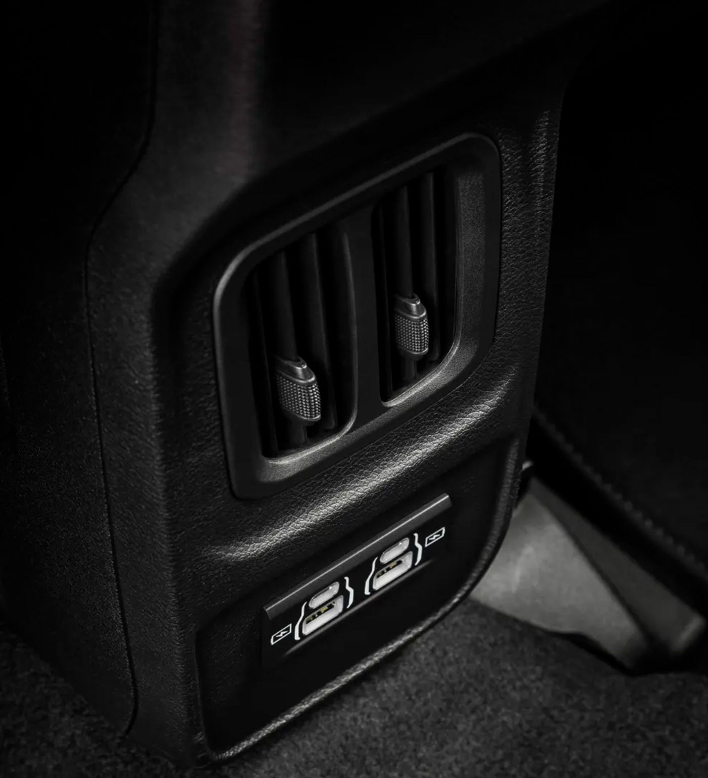 Con el aire acondicionado digital de dos zonas, el conductor y el pasajero pueden elegir diferentes temperaturas utilizando el centro multimedia o los botones del tablero. Los que se encuentran en el asiento trasero también cuentan con dos salidas de aire exclusivas.