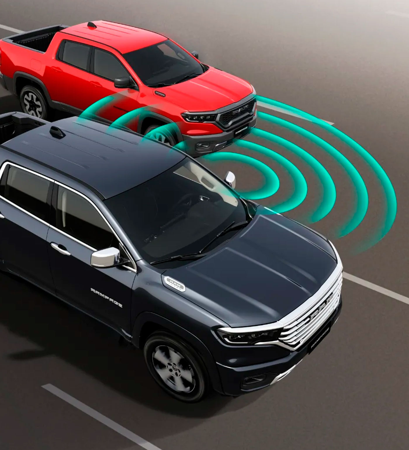 Este sistema es capaz de detectar vehículos y motocicletas ubicados en los puntos ciegos de la nueva Rampage, enviando señales sonoras y visuales para alertar al conductor.